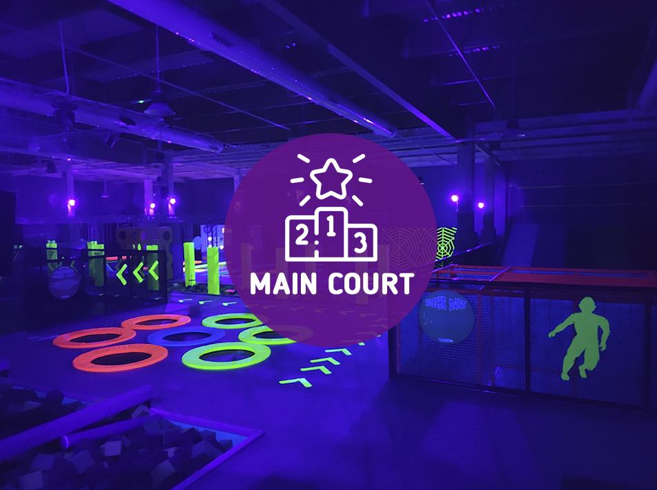 Puedes comprar entradas para cualquiera de nuestra zonas KIDS ZONE (para niños/as entre 1m y 1,35m, edad recomendada de 4 a 9 años) o MAIN COURT (para adultos y niños/as a partir de 1,35m de altura).